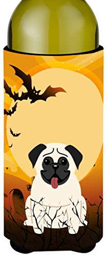 Caroline's Treasures BB4270LITERK Halloween Pug Cream Wine Bottle Beverage Insulator Hugger, 750ml, Multicolor