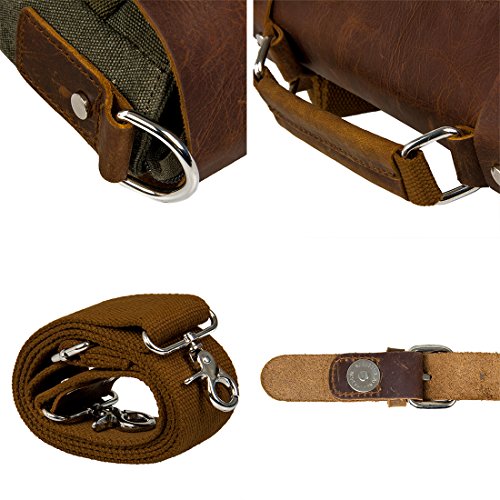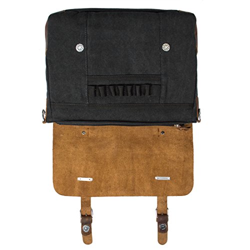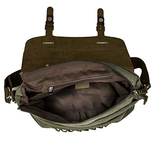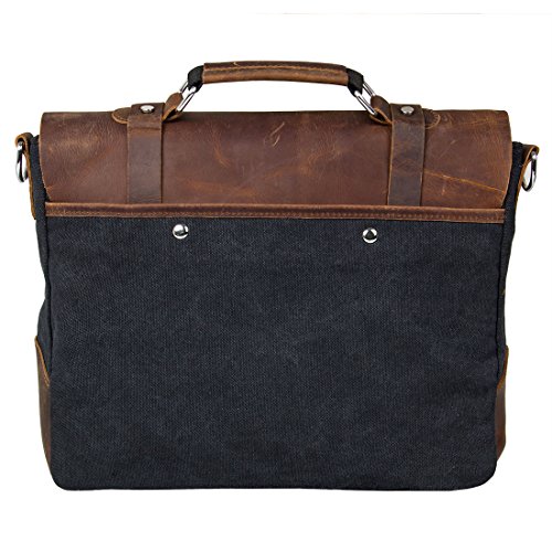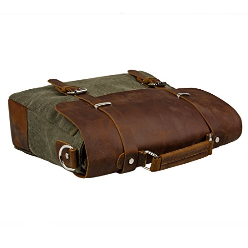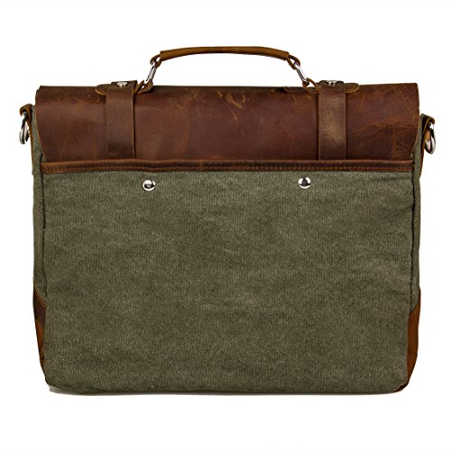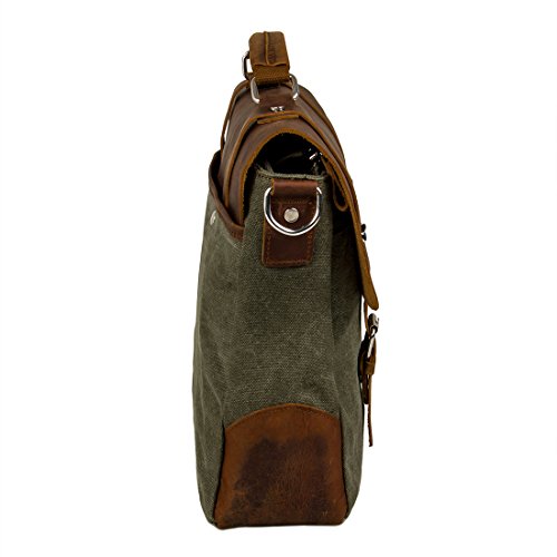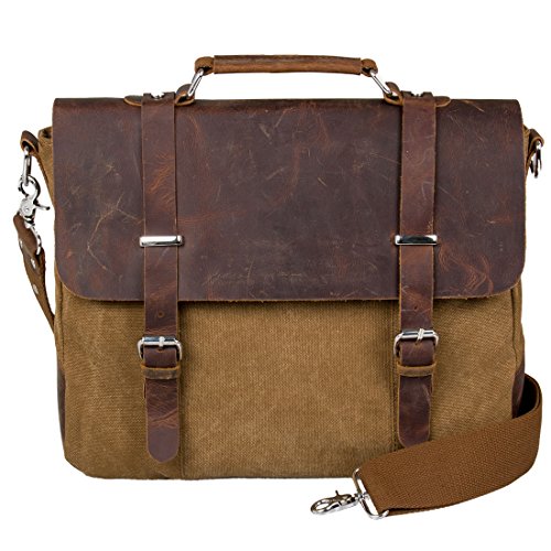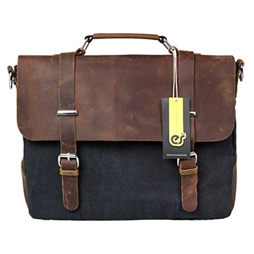 -. Binding : Personal Computers -. Brand : ECOSUSI -. Feature : 100% premium canvas, crazy horse leather trim / Overall dimensions: 14"L x 3.9"W x 11"H, durable top handle and adjustable shoulder strap / Fashion vintage design and well sewn craftsmanship with the main bag. Two row magnetic buckles feature make size adjustable / Easy to carry A4 Magazine book, cellphone, IPAD and more(special padded compartment for your 14-inch laptop) / Multi-functional storage pockets inside, ample capacity for business, travel and everyday use. More fashion bags@ECOSUSI -. ProductGroup : PC Accessory -. ProductTypeName : CARRYING_CASE_OR_BAG -. Title : ECOSUSI Men's Vintage Canvas Leather Satchel School Military Shoulder Messenger Crossbody Hiking Bag