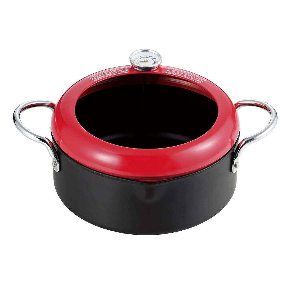 | 油ハネを防ぐガード枠が付いており、そのガード枠には揚げ物食材の適温メモが記載されています。 |