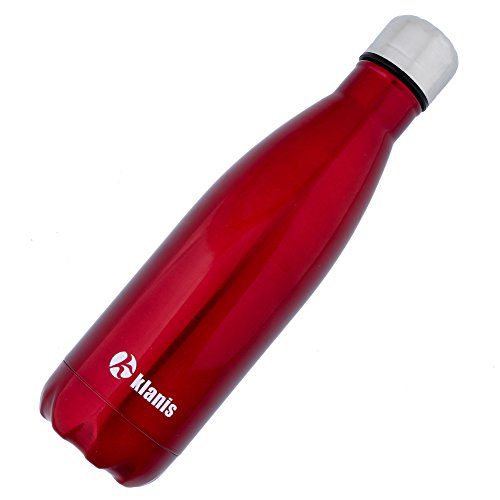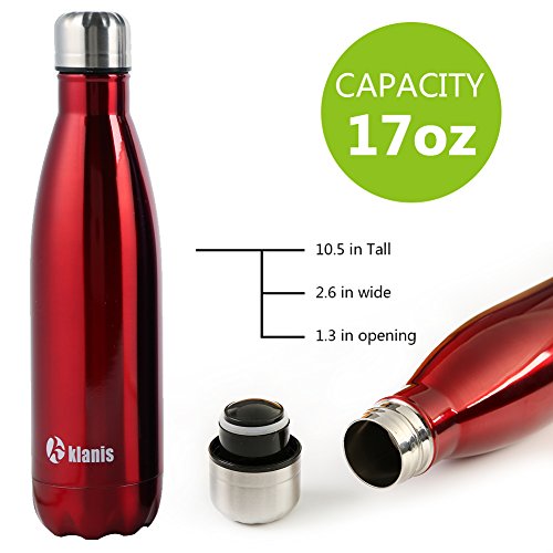 Travel Thermos Mug For Girls 17 Oz 4 Colors Bonus a Cleaning Brush No Leak Slim Water Bottle Hot And Cold Thermos (RED)
