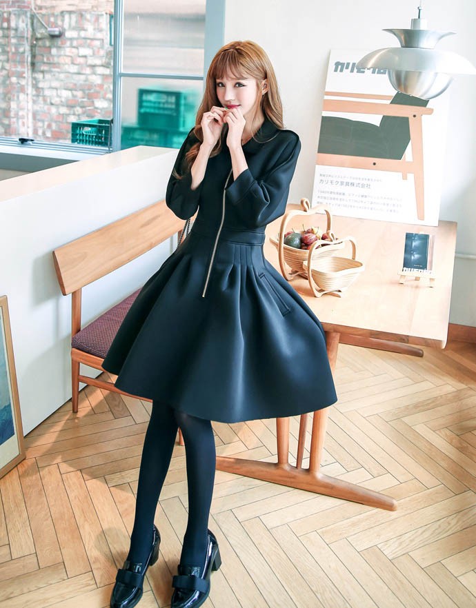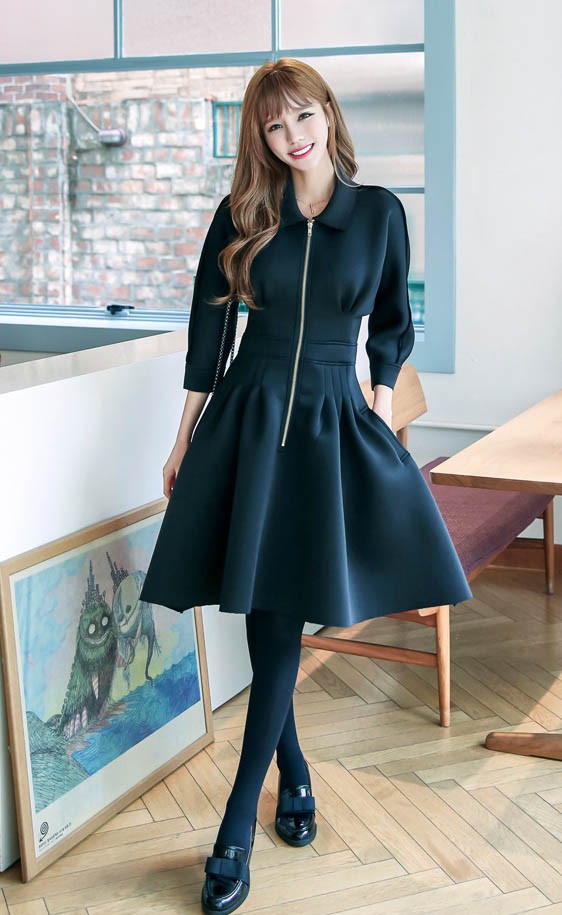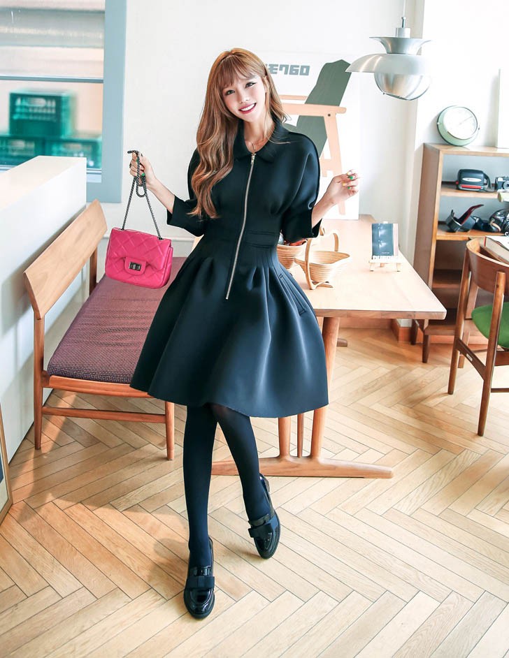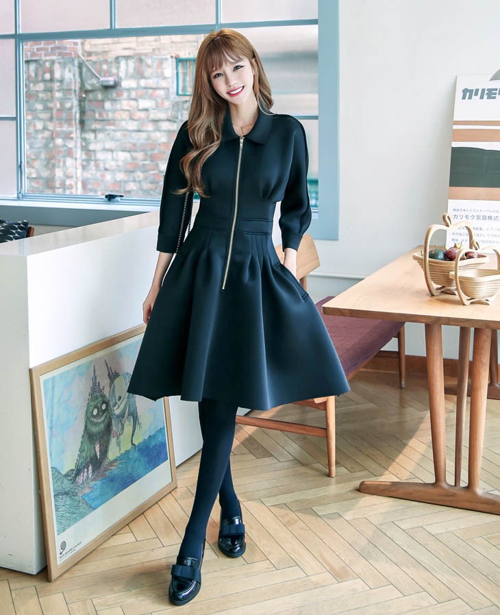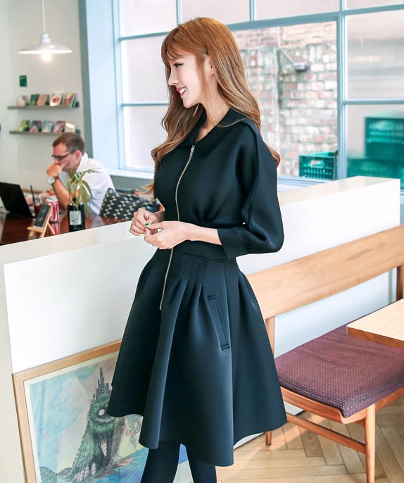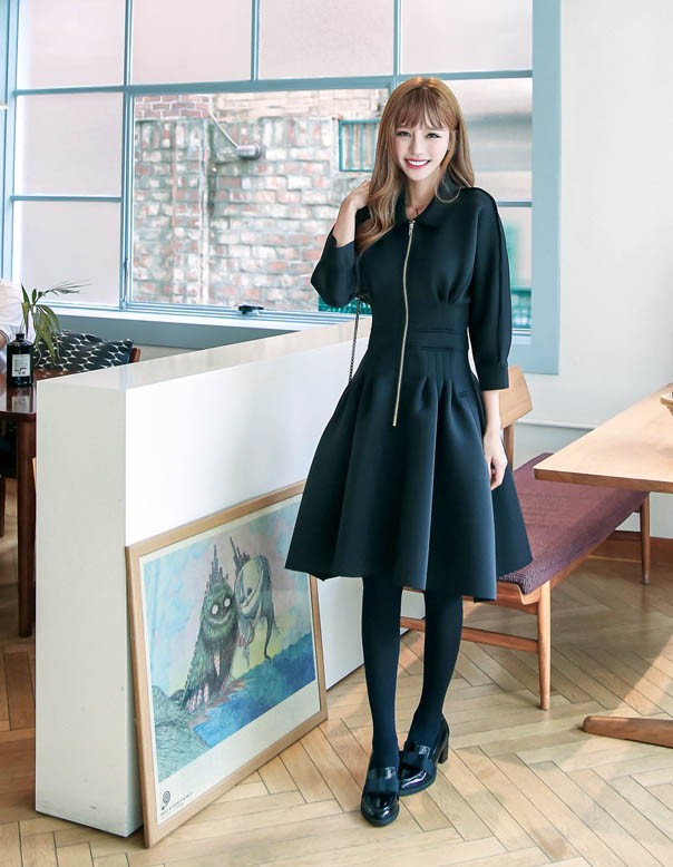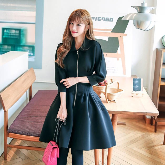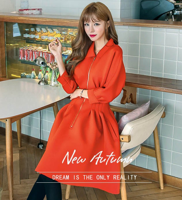 ワンピ ワンピース Aラインワンピ Vネック 厚手 ファスナー レディス レディース 秋 新作 2017