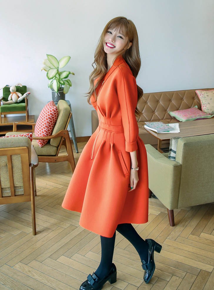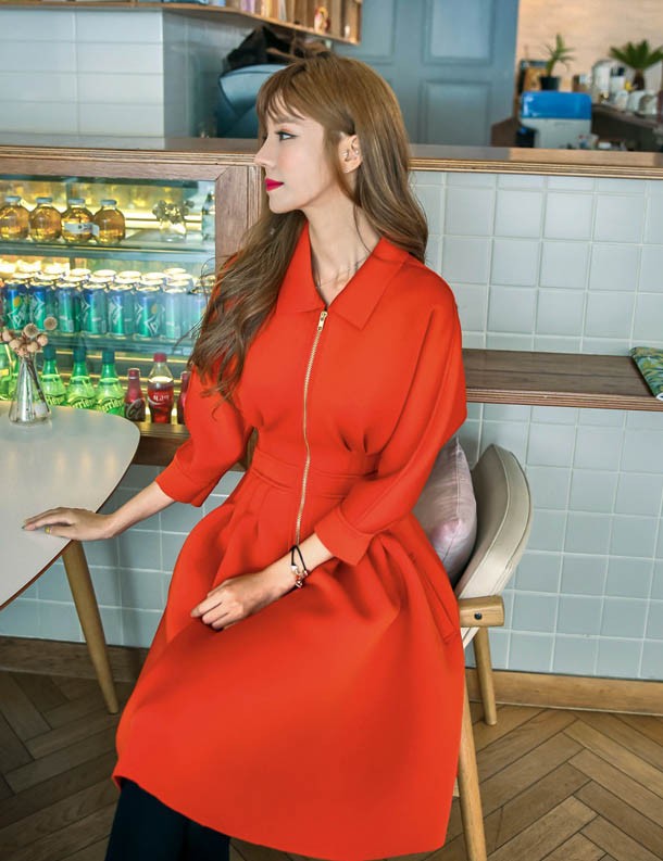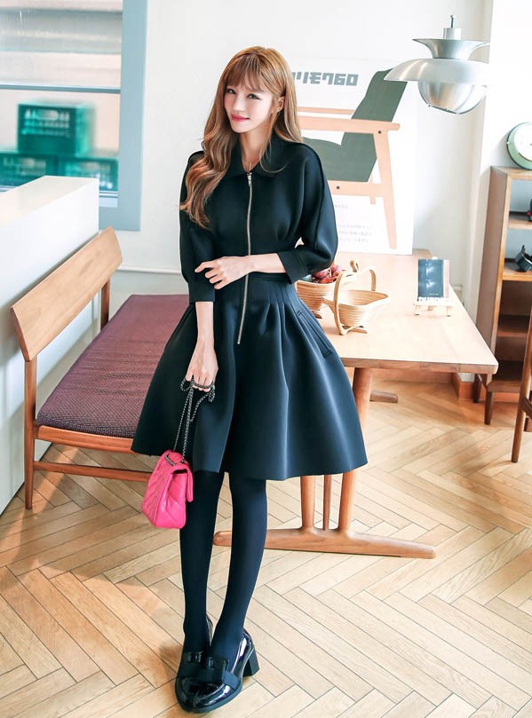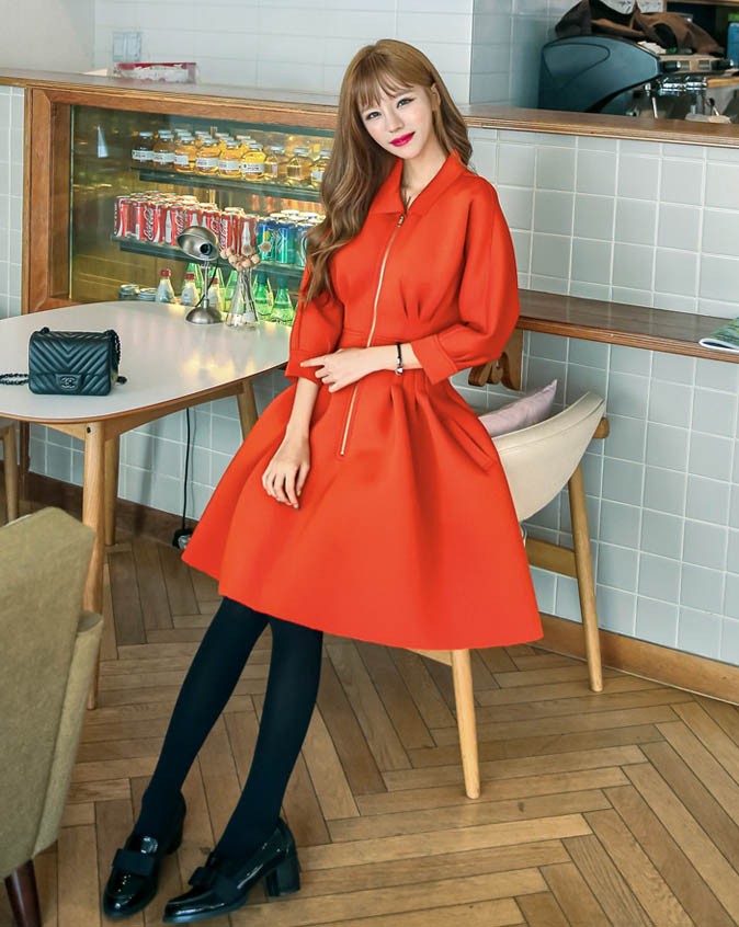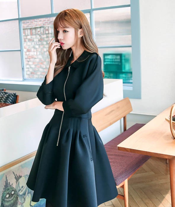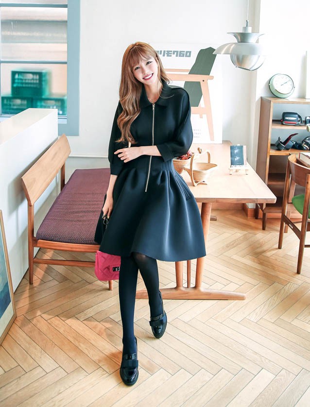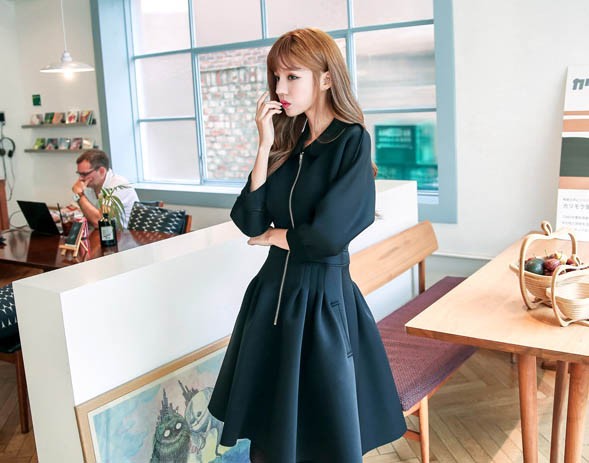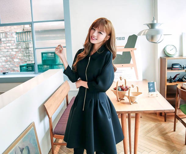 ワンピ ワンピース Aラインワンピ Vネック 厚手 ファスナー レディス レディース 秋 新作 2017