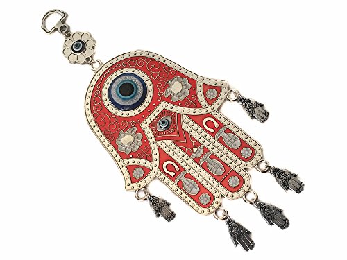 -. Binding : Kitchen -. Brand : Betterdecor -. Color : red,blue,silver -. EAN : 0661799422932 -. Feature : The sale is for one Hamsa "Evil Eye"protection hang & a pouch with"Betterdecor" P.R.Inted on it / Total about 9" in length . Size of Hamsa hand: 5"x3.75" width / material : metal / you can put them on the wall of your office of home to protect yourself. -. IsAutographed : 0 -. MPN : 9K-M86H-BS7W -. PackageQuantity : 10 -. PartNumber : 9K-M86H-BS7W -. ProductGroup : Home -. ProductTypeName : HOME -. Title : Red Hamsa Evil Eye Protection Almulet Hanging -. UPC : 661799422932