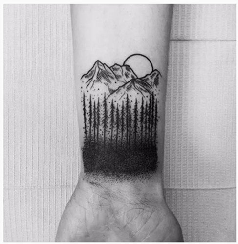 Set of 2 Waterproof Temporary Fake Tattoo Stickers Cool Black Grey Forest Mountain Unique
