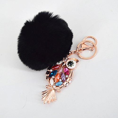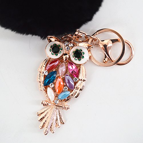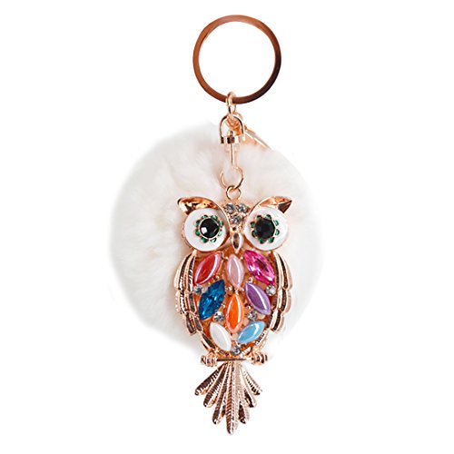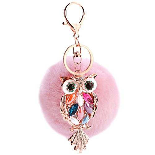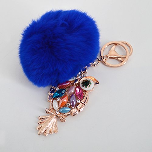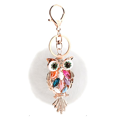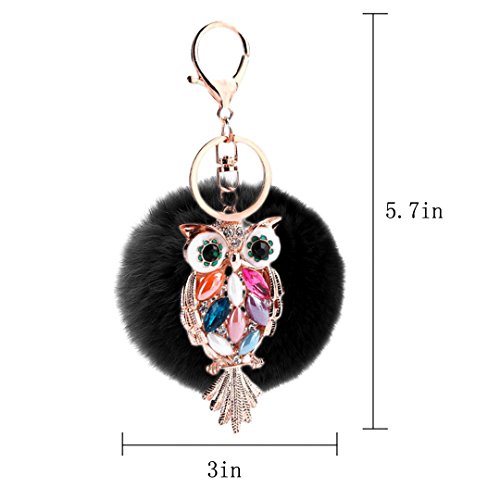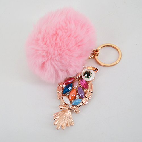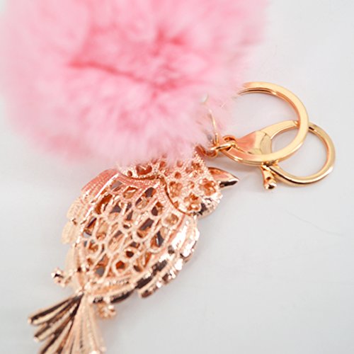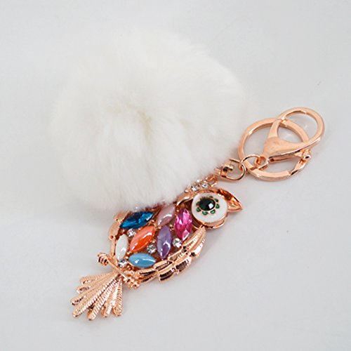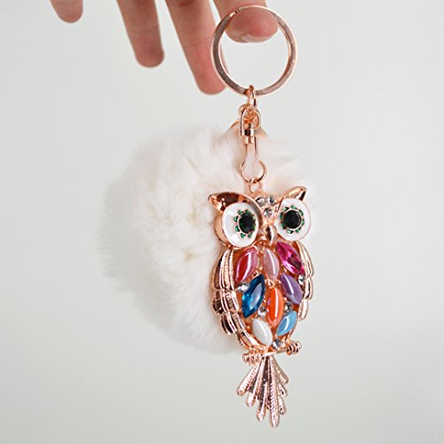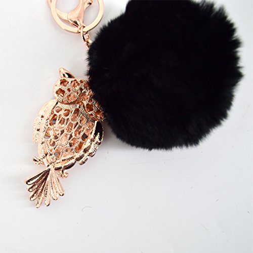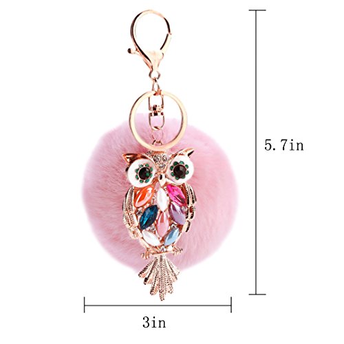 Material: Faux rabbit fur and zinc alloy. Style: Fashion. Type: Key chain. Pattern: Owl. Applicable targets: Women, men, students and children. Application places: Home, office, car and travel. Product size: 3 * 5.7in. Packing Included: 1 * Key chain.