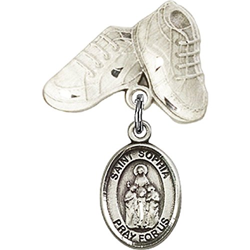 -. Title : Sterling Silver Baby Badge with St. Sophia Charm and Baby Boots Pin 1 X 5/8 inches