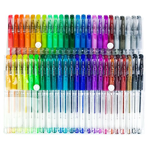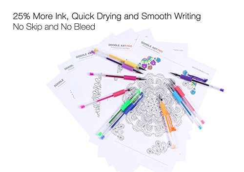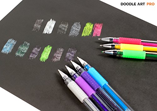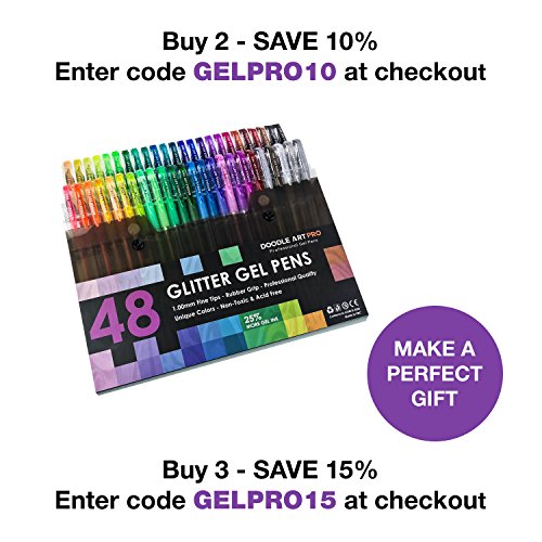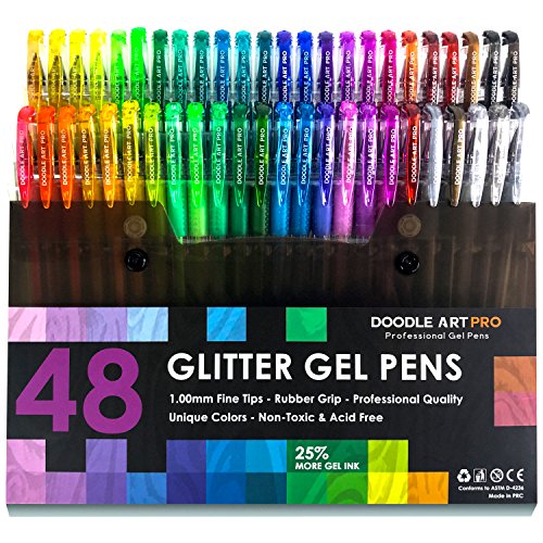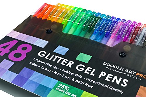 Gel Pens Glitter - 48 Coloring Gel Pen Set - Unique Colors - Professional Gel Pens For Adult Coloring Books by Doodle Art Pro