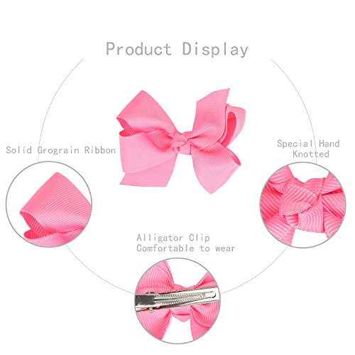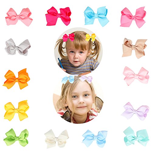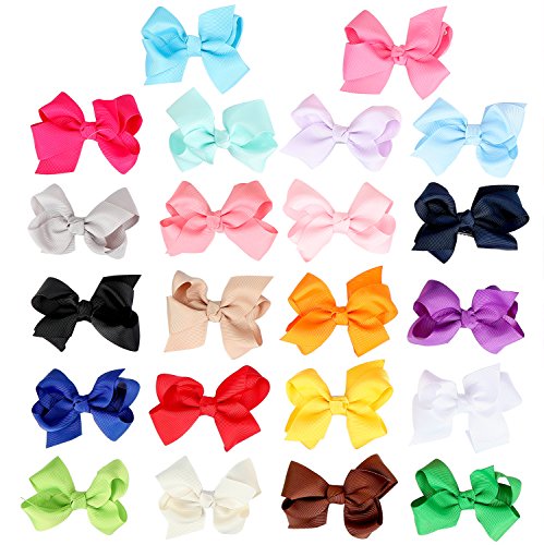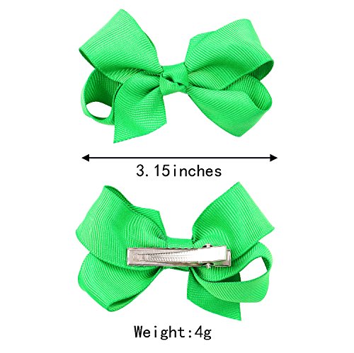 Specification: Hair bow size: approx. 3 inch / 8cm Grosgrain ribbon: approx. 1 inch/2.5cm(width) Clip type: Alligator hair clips Quantity: 22 solid colors WARNING: Small parts can choke a child if they become detached,adult supervision required!