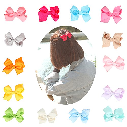 These boutique hair bows are about 3 inches length, handmade with 2.5cm width grosgrain ribbon, will not get stuck or tangles in your kids hair! Each baby hair bow is attached 4cm lined alligator clip, which can stay in place and hold your baby thin hair well. 22 different colors for you, fantastic and beautiful, making it easy to match any outfit. Suitable for many occasions, such as birthdays, baby shower, baby Gifts, holiday and more! A good hair accessory to make a pigtail pony tail for toddler children kids The hair clips also can be used to decorate headbands, hats, bags and shoes!