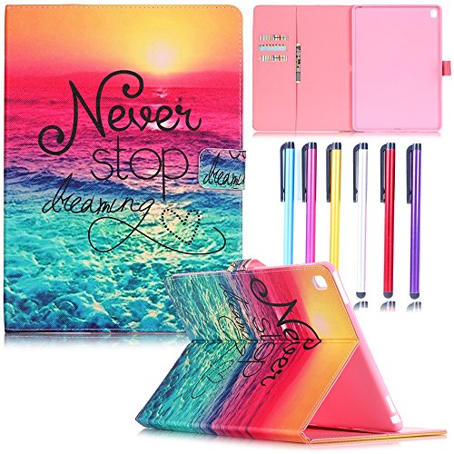 Hismo Smart-Shell Build in Magnetic Case for New 2016 iPad Pro 9.7 Inches Case with Card Slots and Billfold Painting Kickstand Lightweight Case for Apple iPad Pro 9.7" (Never Stop)