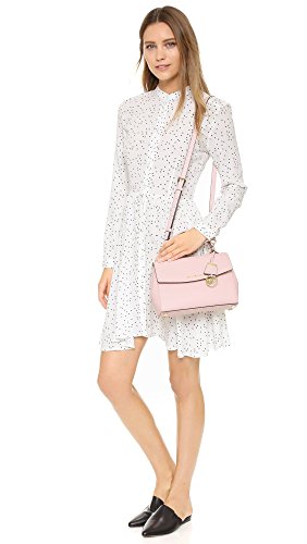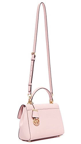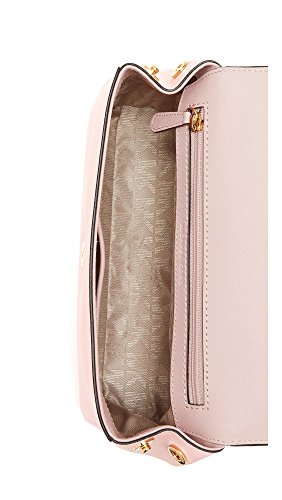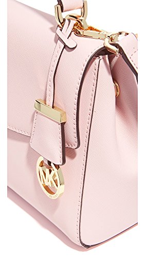 A structured MICHAEL Michael Kors cross-body bag in saffiano leather. A logo charm accents the front, and snap gussets provide adjustable volume. Top flap and lined, 2-pocket interior. Top handle and optional, adjustable shoulder strap. Dust bag included.Feature