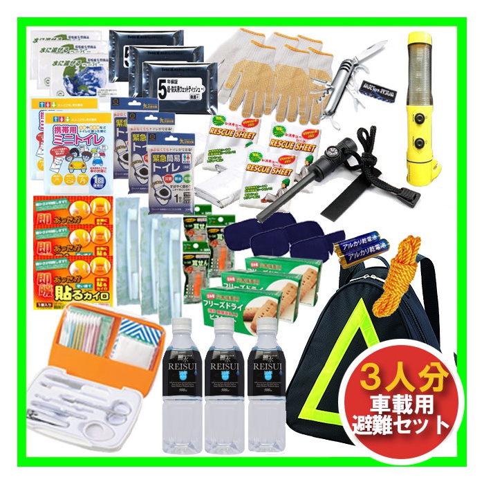 【지진/재난/대비/방재/상품】 방재 세트 3인용【차량 탑재용 】정체나 차량 트러블 사고 재해 긴급시에 활약!(10년 보존 수3명 용방재 상품 비주식 보존식 비상 유출대 프로 권장 만(지진 대비 방재 세트 피난 세트)