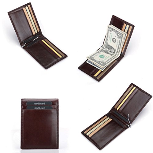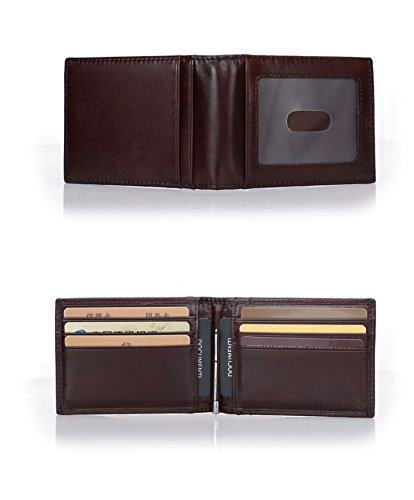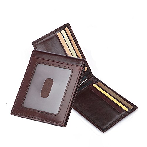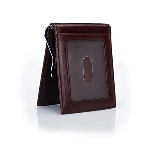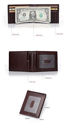 -. Feature : Cowhide leather Made.Anti-magnetic. Handiness for your daily used. / Size by 1 x 8 x 11.5cm(0.4" x 3.1 " x 4.5 "), 8 card slots,1 ID window,1 middle money Clip. / Can hold 8-10 cards, 10 more folded bills, coins. / RFID blocking, security for your cards data information, protect your money and P.R.Ivacy safety.