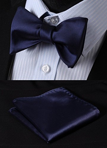 (HISDERN)/Accessories/Ties/DIRECT FROM USA/SetSense Men's Solid Jacquard Wedding Party Self Bow Tie Pocket Square Set Pure Navy Blue