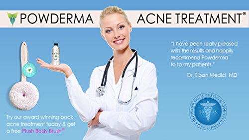 Powderma in non-comedogenic and does NOT contain talc, parabens, waxes, oils, dyes, perfumes, or phthalates. Powderma is non-greasy and will leave your skin feeling smooth to the touch. Both Powderma Acne Treatment and our Plush Body Brush® are made in the U.S.A.