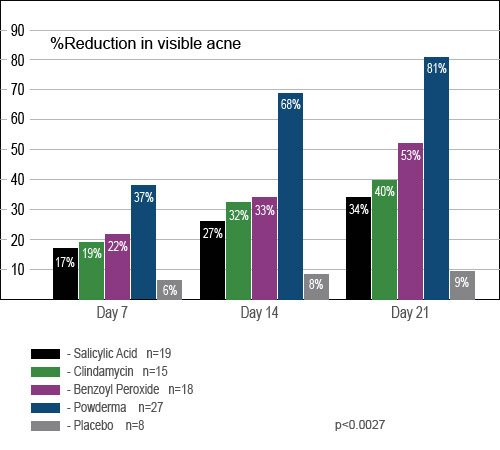 Powderma® Acne Treatment is an advanced medicated powder that absorbs the dirt, oil & bacteria clogging your pores. Unlike other acne treatments, Powderma addresses the root cause of acne, which is your skin's over-production of oil [sebum] that clogs your pores and becomes a breeding ground for bacteria. Powderma® also includes anti-microbial properties that help heal existing blemishes and inhibit the growth of bacteria, preventing future breakouts from ever occurring.