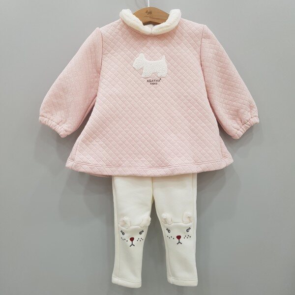 아가타 여아 상하세트입니다. 털카라와 아가타 시그니처가 포인트며, A라인으로 퍼져있어 사랑스럽습니다.하의는 레깅스이며, 안감은 기모로 되어있어 따뜻하비니다.