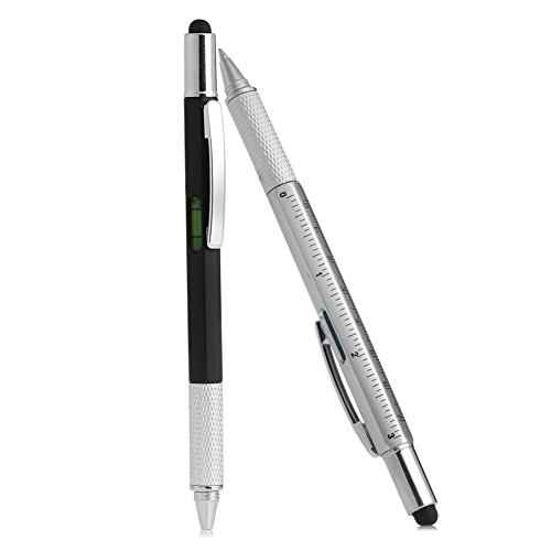-. Feature : Material: Metal / Size: 14.5 x 1cm/5.71" x 0.39"(L*D) / 6 in 1 multifunction (Touch screen stylus, Cross-head/slotted screwdriver, Spirit level, Ruler/Scale, Ballpoint pen) / Compact and lightweight, convenient to carry / Compatible with iPhone 5/5S/5C/4/4S, iPad Air/4/mini/3/2 and all capacitive touch screen