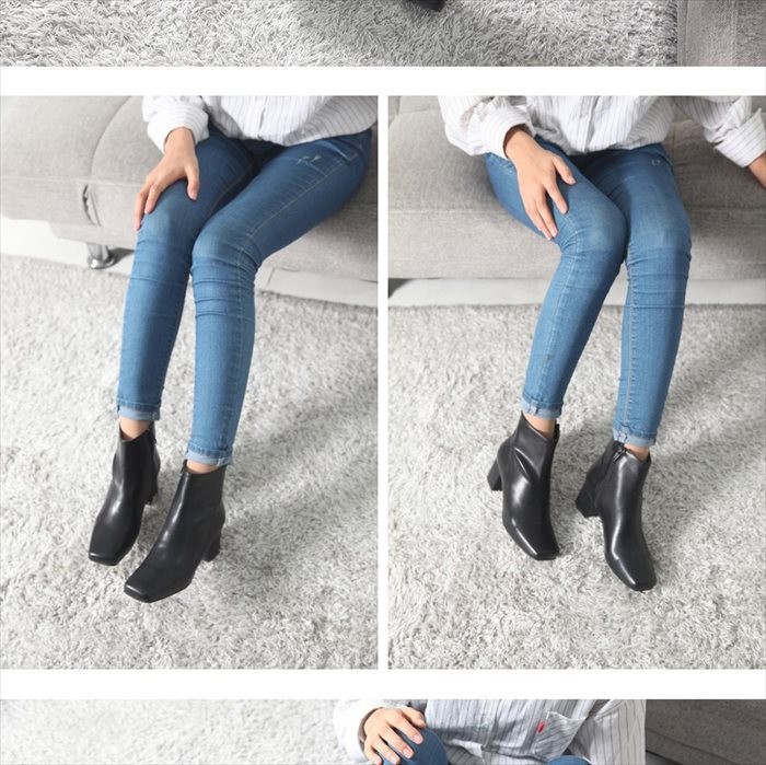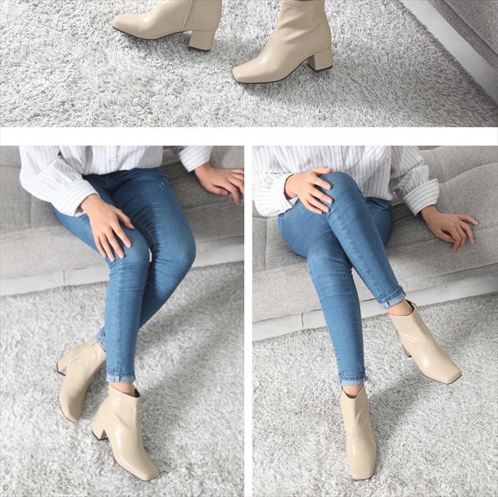 商品名:ブーティ レディース ブーティー チャンキーヒール スクエアトゥ 2017 秋冬 ファッション 靴 婦人靴