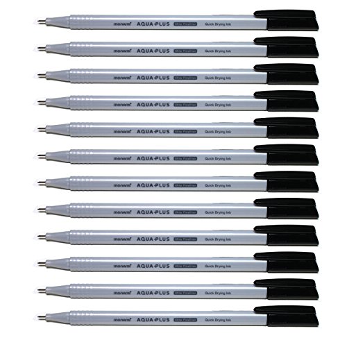 -. Title : Monami Aqua-plus Triangular Design Water-based Ultra Fineliner -0.3mm- Black - Pack of 12 Pens