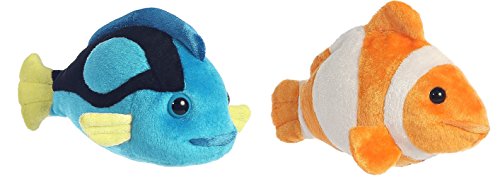 -. Title : Bundle of 2 Aurora 7" Stuffed Beanbag Animals - Blue Tang Fish & Clownfish