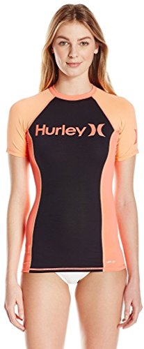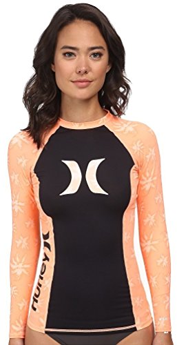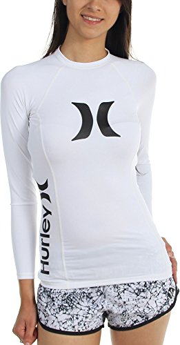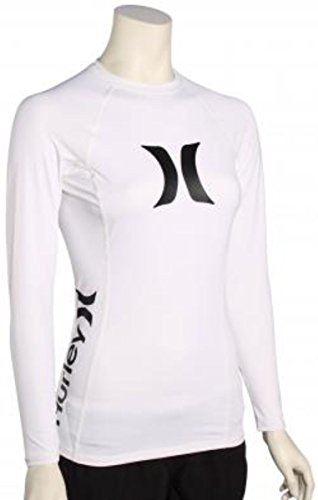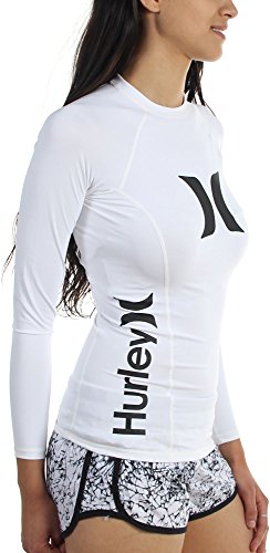 The Hurley Women's One & Only Long Sleeve Rash Guard features the Hurley logo on the front. It also features the Hurley name and logo on the right side. Composed of 5OZ Lycra, this rash guard is light, durable, and has a UPF 40 rating to keep you burn free.Feature