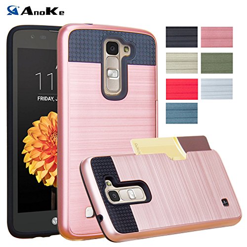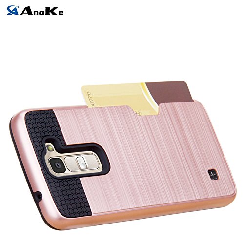 LG Tribute 5 Phone Case, LG K7 Case,LG Treasure LTE Case,AnoKe [Card Slots Holder] Hard silicone Rubber Hybrid Armor Shockproof Protective Holster Case for LG Tribute 5 / K7 KLS Rose Gold