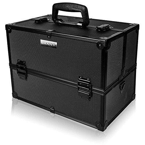 SHANY Essential Pro Makeup Train Case with Shoulder Strap and Locks, Black