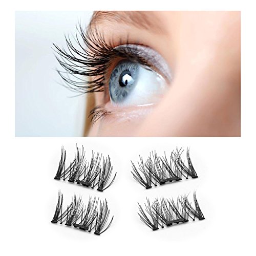 False Magnetic Eyelashes 3D Reusable Fake Eyelashes 4 Pieces Ultra Thin Make Up 0.2mm Ultra-thin 3D Fiber Eyelashes (Color #2)