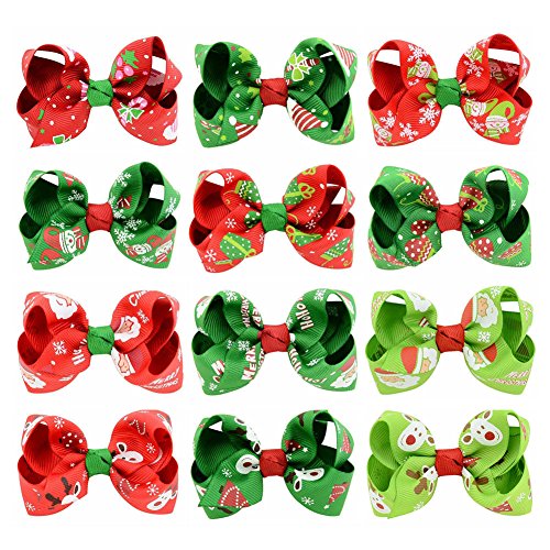 Pack of 12pcs different designs boutique hair bows,available for almost all occasions when is needed,perfect for Christmas