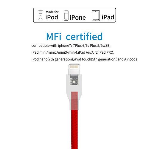 ImpactStrong StrongPower Heavy-duty Lightning Cable (6ft) Durable and Fast Charging Apple MFi Certified [Double Braided Nylon] for iPhone, iPad and More (Red)