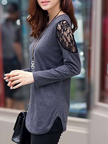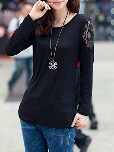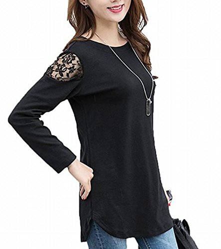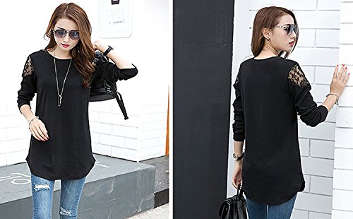 -. Title : (ベンヴェヌーティ) benvenuti レディース 長袖 スリム 綿 ロング 秋物 Tシャツ 丸首 レース チュニック 無地