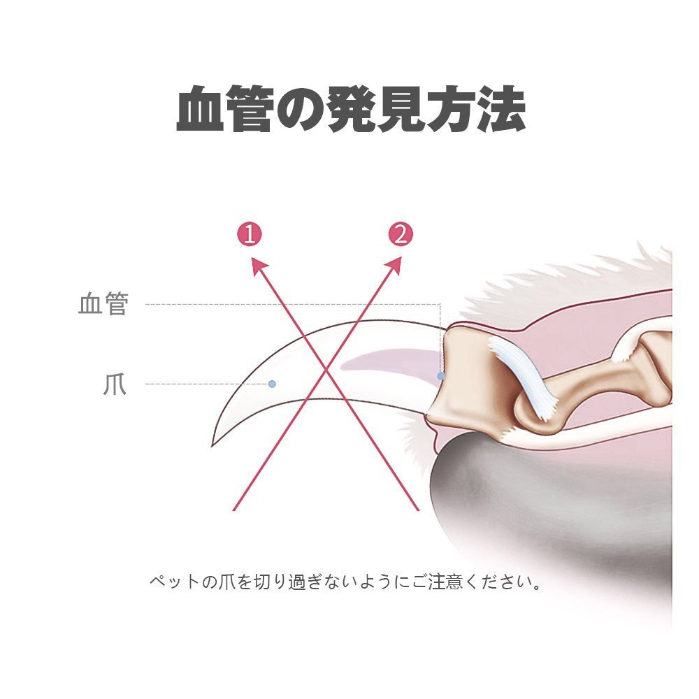 【150度曲げたデザイン】ペットの爪がはっきり見えます。安全安心にご使用頂けます。 【快適なハンドル】樹脂製グリップ&人間工学に設計されたハンドルで、滑り止めで快適に把握可能になり、簡単に切れます。 【高品質ブレード】刃はステンレス製で、爪切りの耐久性と鋭さが時間の共に証明できます。 【適用】猫、小型犬、中型犬、ウサギ 小動物等に適用します。初心者でも自宅で簡単にカットできます。