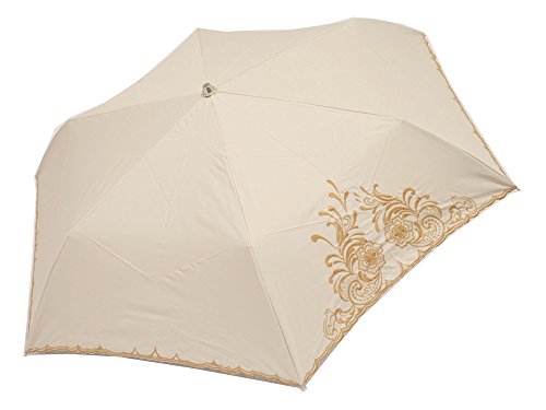 -. Title : 【晴雨兼用折りたたみ傘】 カラーコーティング 駒飛ばし刺繍×裾スカラー ミニ ベージュ 50cm 27565-BE