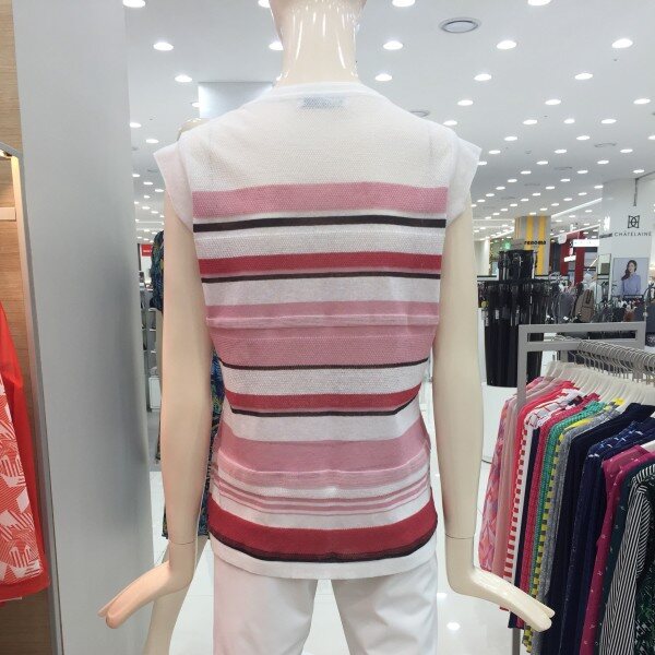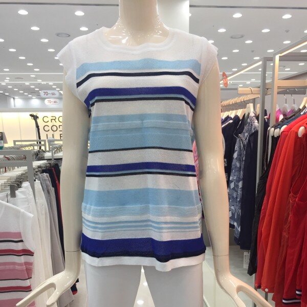 마 혼방 소재의 니트 풀오버로 톤온톤의 멀티 스트라이프가 멋스럽고 이너로 코디하기에 좋은 아이템.