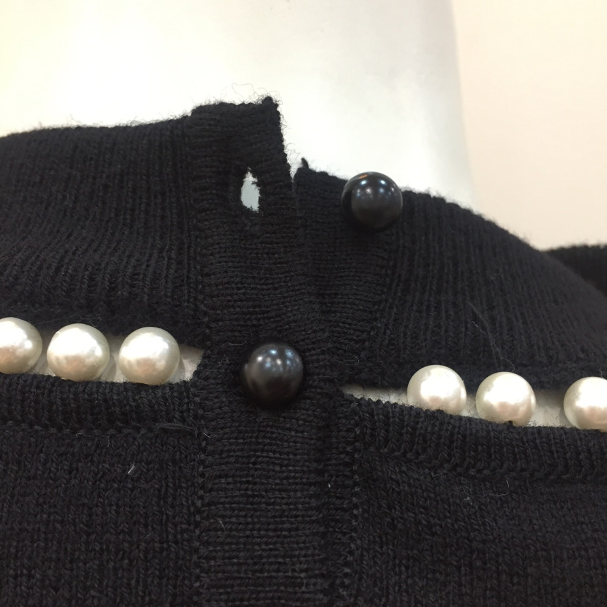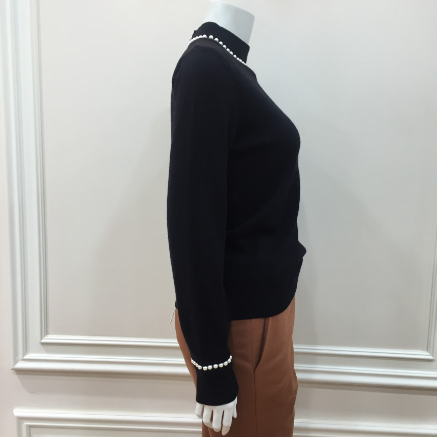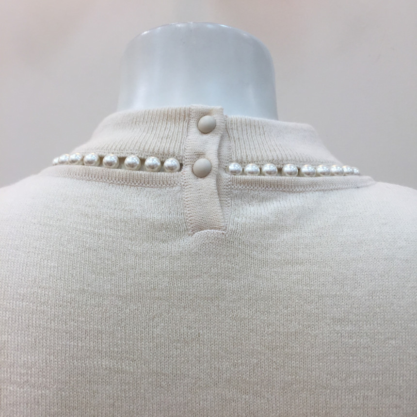 - 네크와 소매 부속을 진주로 연결하여 섬세함이 돋보이는 풀오버입니다.