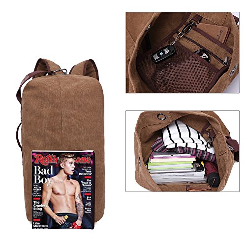 Title : GINGOOD Top Load Canvas Military Duffel Bag with Shoulder Strap #206 Coffee