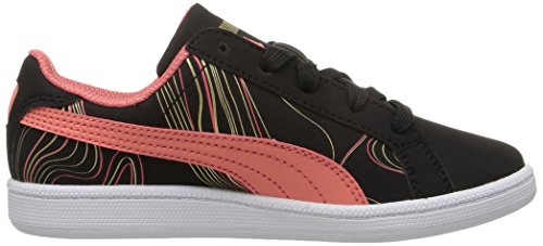 PUMA Smash FUN Buck Marble Kids Sneaker, Puma black/Porcelain Rose, 4 M US Big Kid