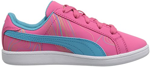 PUMA Smash FUN Buck Marble Kids Sneaker, Fandango Pink/Blue Atoll, 11 M US Little Kid
