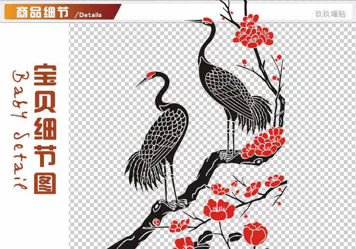 墙贴中式中国风酒店办公室装修松鹤延年日出松树仙鹤屏风玄关贴纸