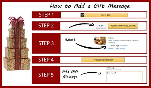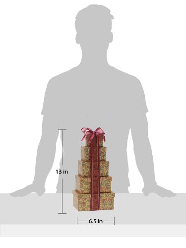 -. Feature : Great gift for birthday, thinking of you, or any occasion / Perfect gift basket for family and friends, or as a corporate office gift. / Gift tower includes: Old Fasion Peanut Brittle (4oz), Soft Vanilla Caramels (4oz), Gourmet Caramel Popcorn (6oz), Cranberry & Nut Trail Mix (4oz), Chocolate Chip Cookies (4oz) / Gift tower measures 4.5" x 6.5" x 13" high / Kosher Certified OK D. Giving a kosher gift ensures that all recipients can enjoy and partake in your gift.