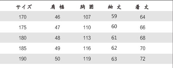 180 肩幅48 胸囲113 着丈68 袖丈61