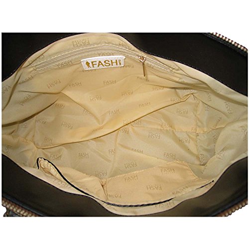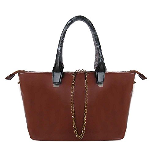 FASH Satchel eye-chained two faced structured Handbag-brown and black