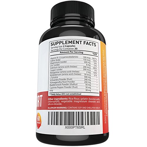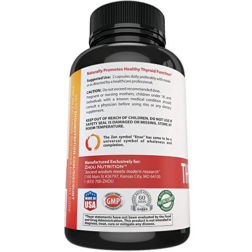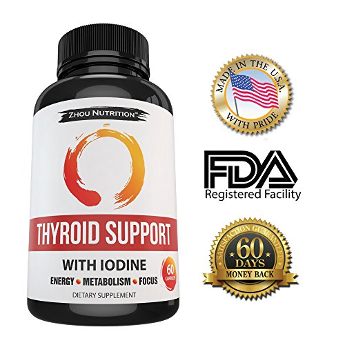 -. Binding : Health and Beauty -. Brand : Zhou Nutrition -. EAN : 0637769765873 -. Feature : BOOST METABOLISM AND LOSE WEIGHT - Our thyroid complex acts as a helper for your thyroid which helps increase metabolism and encourages weight loss. Watch the pounds fall off on your way to a happy and healthier you. / REMOVE THE BRAIN FOG & THINK CLEARLY - Tired of living in a mental fog? You will be amazed at how much better you can concentrate and focus when your thyroid is functioning properly due to our expert blend. Watch your productivity soar as you conquer daily tasks with ease. / WAKE UP RESTED & STAY ENERGIZED ALL DAY - Are you sick and tired of being tired? With our All Natural Thyroid Support, You will wake up rested and stay energized throughout the day by giving your thyroid gland the nutrients it needs. / NATURAL & SAFE ALTERNATIVE - Our formula contains an all natural blend of vitamins, minerals, herbs and amino acids crafted by experts in the field of modern nutritional science. These natural ingredients include: vitamin b-12, iodine, magnesium, zinc, selenium, copper, manganese, molybdenum, l-tyrosine, schizandra, ashwagandha root, bladderwrack, & cayenne pepper. Our formula is safe & effective for both men and women. / 'FEEL LIKE YOUR OLD SELF' GUARANTEE - Return even the empty bottles! We are so confident that you will love our Thyroid Support that we will refund every penny if you don't like it! What do you have to lose? You will either boost your metabolism, think more clearly & feel like your old self again or you will get a full refund. -. Label : Zhou Nutrition -. Manufacturer : Zhou Nutrition -. PackageQuantity : 1 -. ProductGroup : Health and Beauty -. ProductTypeName : HEALTH_PERSONAL_CARE -. Publisher : Zhou Nutrition -. Studio : Zhou Nutrition -. Title : Thyroid Support Complex With Iodine to Improve Energy & Help Lose Weight - Natural Supplement to Increase Concentration, Boost Metabolism & Reduce Brain Fog - 'Feel-Like-Your-Old-Self-Again' Guarantee -. UPC : 637769765873