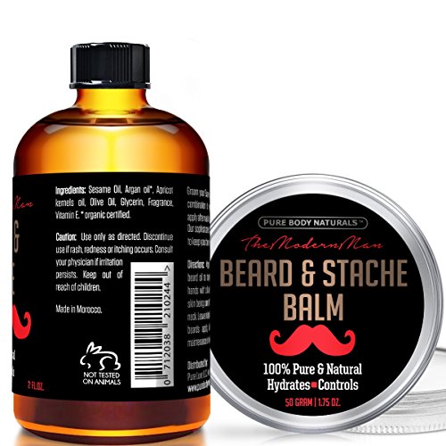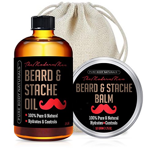 New beard and stashe duo featuring 100% natural oil & balm to hydrate, control and help ease itch or irritation associated with the first few weeks of new beard growth