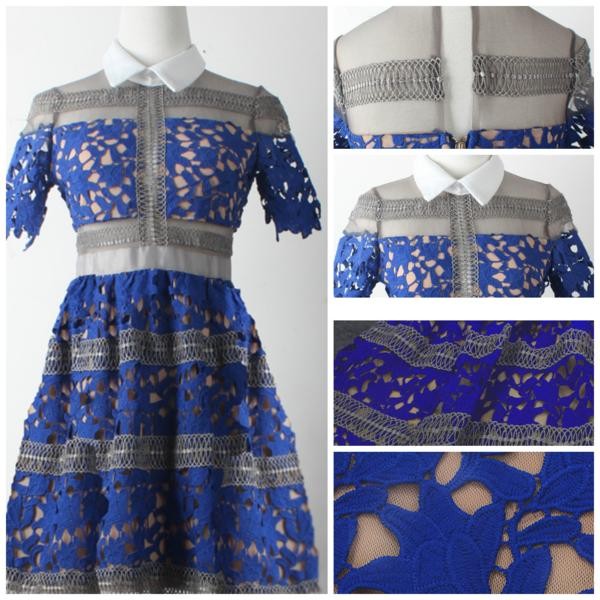 綺麗なブルーレース ロングドレスワンピース 半袖