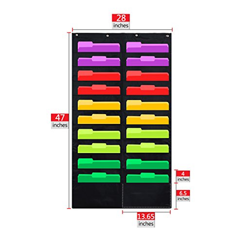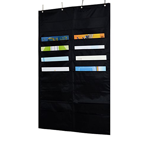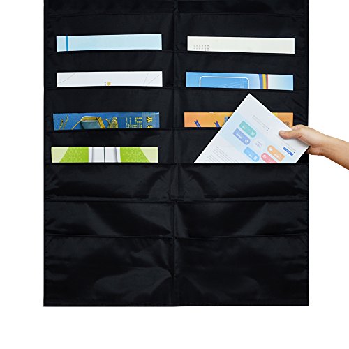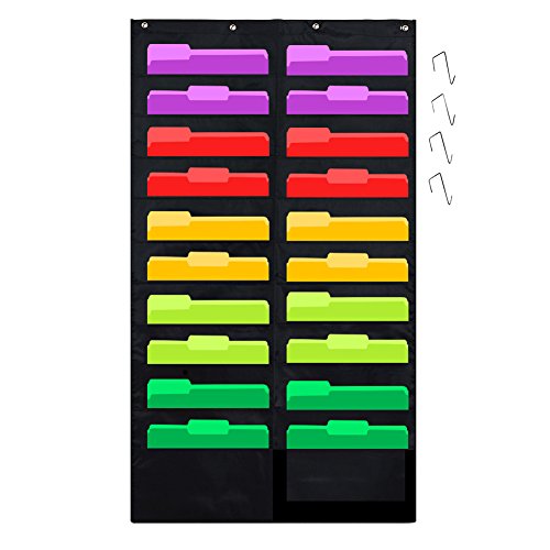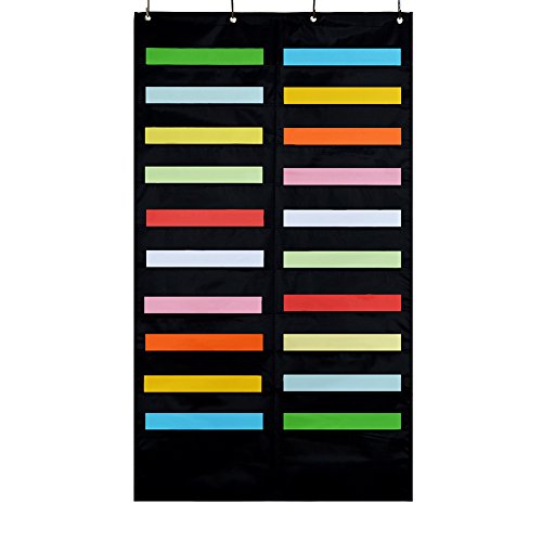 Godery Folder Pocket Chart (Black), Cascading Wall Organizer for school, classroom, home or office use, 20 pocket chart hanging wall organizer with 4 Hangers