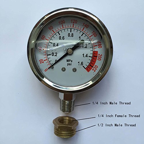 Stainless Pressure Gauge 220 PSI with fitting