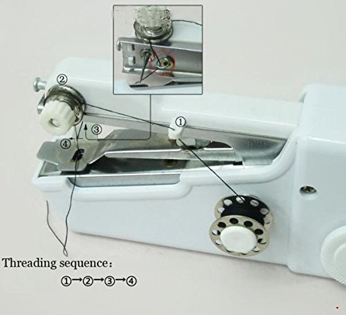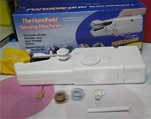 -. Feature : It is easy to operate with an English instructions. / The Hand-Held Sewing Machine is a small, handy, lightweight, easy to carry around piece. / It is funny to make your own handkerchief, apron, gloves,cloth with this practical machine. / Power: 4 X AA Batteries (not included) / Sewing Machine (L)X(W)X(H):21cm X 3.5cm X 6.5cm /7.9''X 1.2''X 2.6''