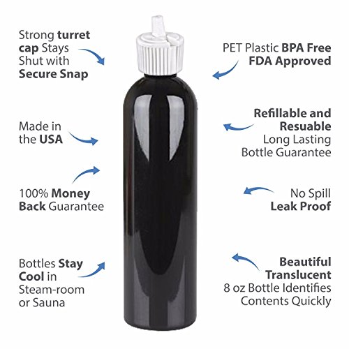MoYo Natural Labs Empty Lotion Bottle with Twist on Turret Style Closures PET plastic (also known as PETE and designated by a recyclable "1") does not contain BPA. This leak proof plastic bottle is bpa free and fda approved and MoYo Natural Labs refillable container and reusable bottle is an 8oz LOTION BOTTLE.236ml dishwasher safe container and is a durable oil bottle, industrial strength food dispenser 8 ounce. Bpa free bottle for liquids can be used for many of your house cleaning, traveling accessories, essential oil, and skin care needs as a safe plastic liquid bottle. Designed to last, MoYo Natural Labs 8 oz soap bottle will save you money and hassle Moyo natural labs 8 oz boston round hair applicator bottle is ideal as a hair dressing spray plastic bottle and a plastic travel size spray bottle for essential oils, essential skin and body care products. - OUR REUSABLE HAIR APPLICATOR BOTTLE PROMISE! If these cosmetic bottles from MoYo Natural Labs become compromised or leak in the first year, we'll replace your liquid dispenser even if it is your fault. We're that confident that you'll love your new 8 OZ EMPTY BOTTLE and will continue to use MoYo Natural Labs 8 oz travel containers in the future. CLICK the "Add to Cart" button to order the MoYo EMPTY SQUEEZE CONTAINER 8 OZ and travel no leak containers today! 0 |